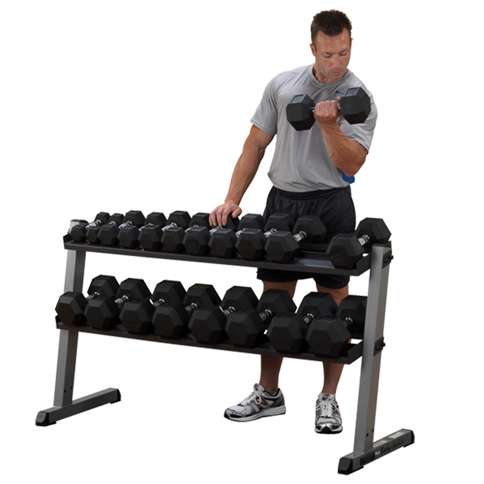 Shown with optional third tier #GDRT6: allows storage of up to 70 lb. dumbbell pairs.