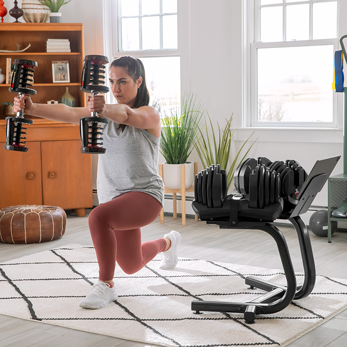 The BowFlex SelectTech Dumbbell Stand with Media Rack is designed to save space, so you can workout from just about any room in your home.