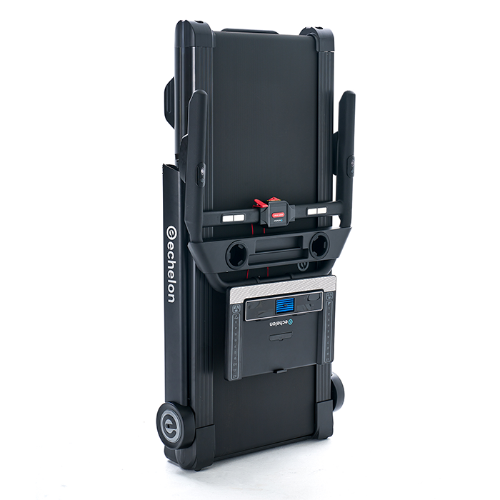 Embark on an immersive running experience with the Stride-6 Treadmill, featuring a captivating waterfall open-front design. Train with world-class instructors through the LED display console that securely holds a wide range of smart devices, and is both Bluetooth® Audio and Echelon Fit® App compatible. Run with assurance on the generous 20.5” x 60” impact-absorbing running deck, effortlessly adjusting speed or incline on the handlebars. Tailor your run with speeds reaching up to 12.4 MPH and choose from 12.5 incline levels, ensuring a suitable challenge for every fitness level. Storage and transportation are a breeze with Echelon’s innovative auto-fold design and convenient vertical/horizontal transport wheels.
