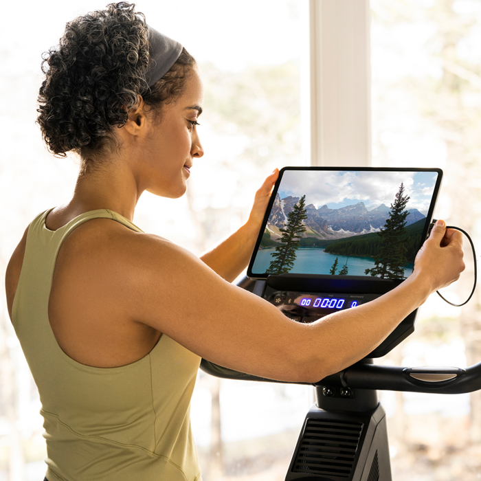 The 5.0U Studio cycle offers smart and simple connectivity. The eye level tablet holder lets you securely place your device, without blocking your workout metrics. Connect your cadence feedback to your favorite apps with Bluetooth, while keeping your device charged using the convenient USB charging port.