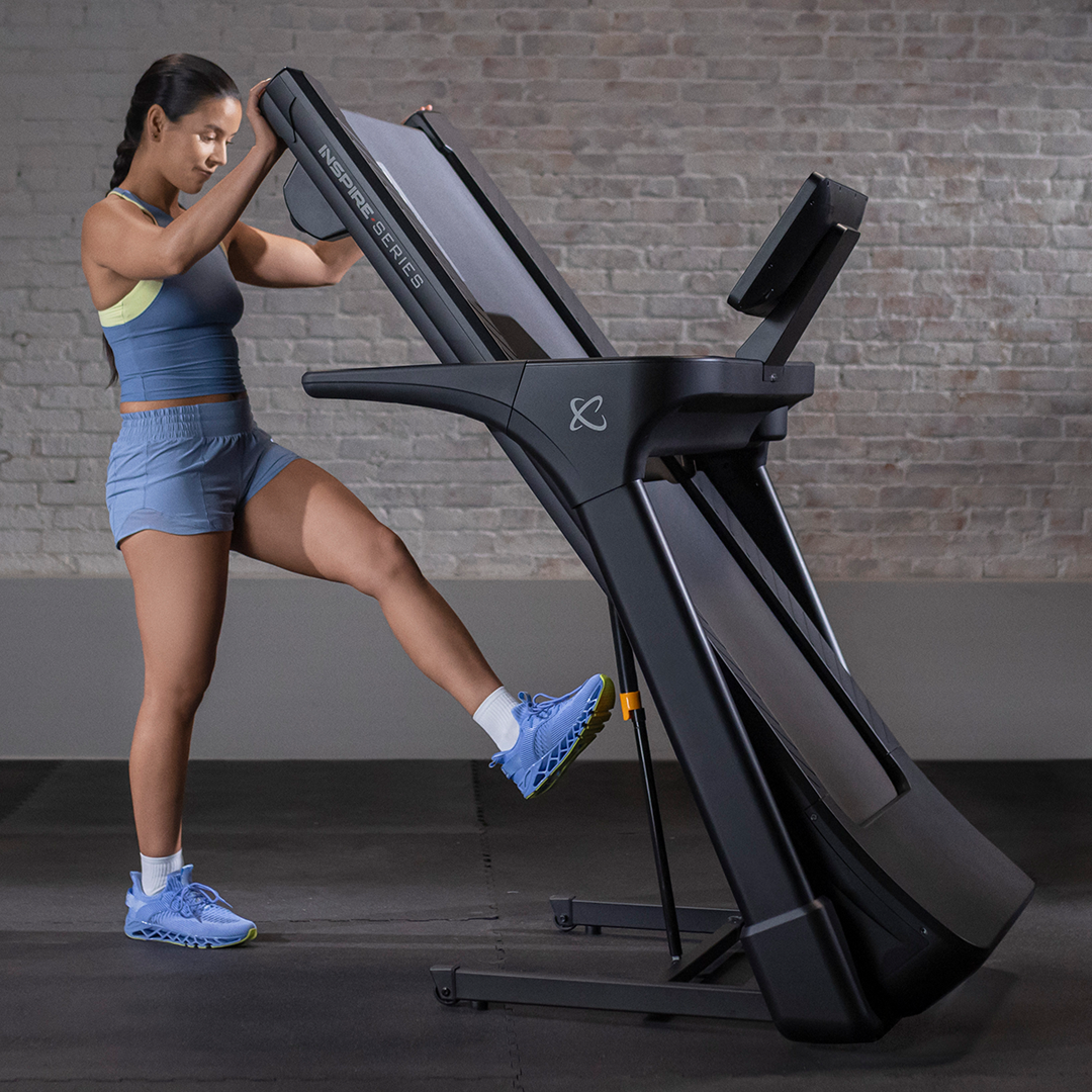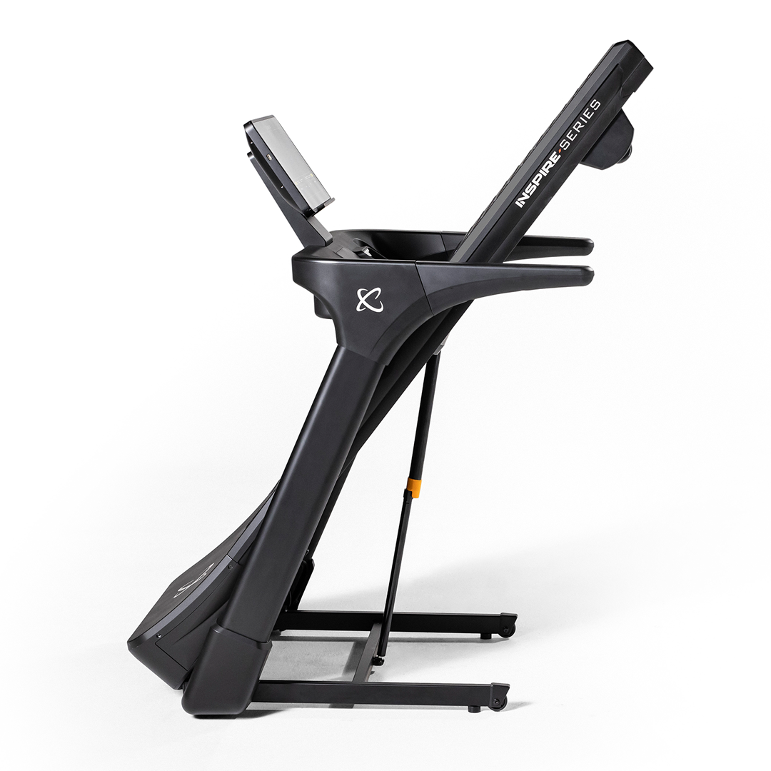The Inspire Series T5 Treadmill features a sleek, foldable design that saves space effortlessly, maintaining style and function while keeping your fitness goals accessible in any room.