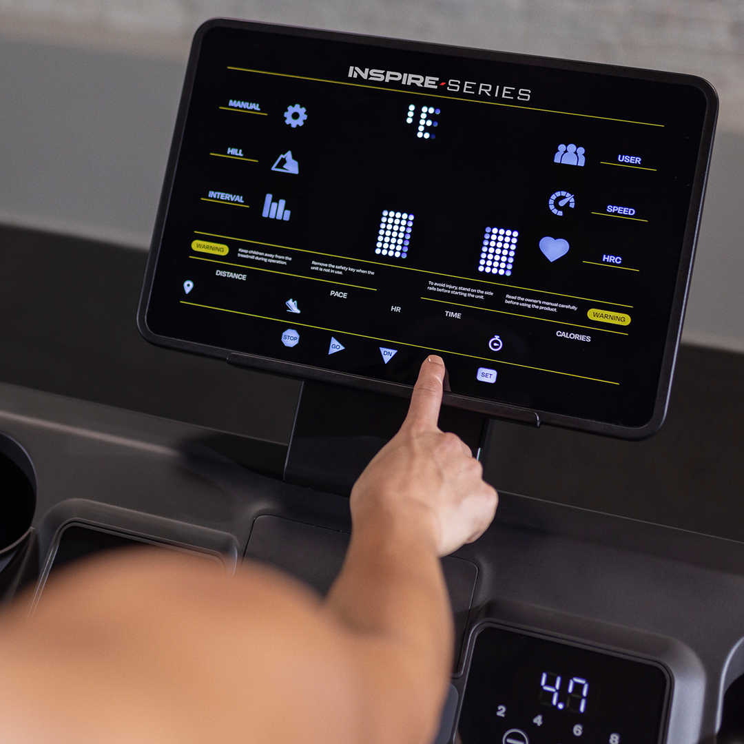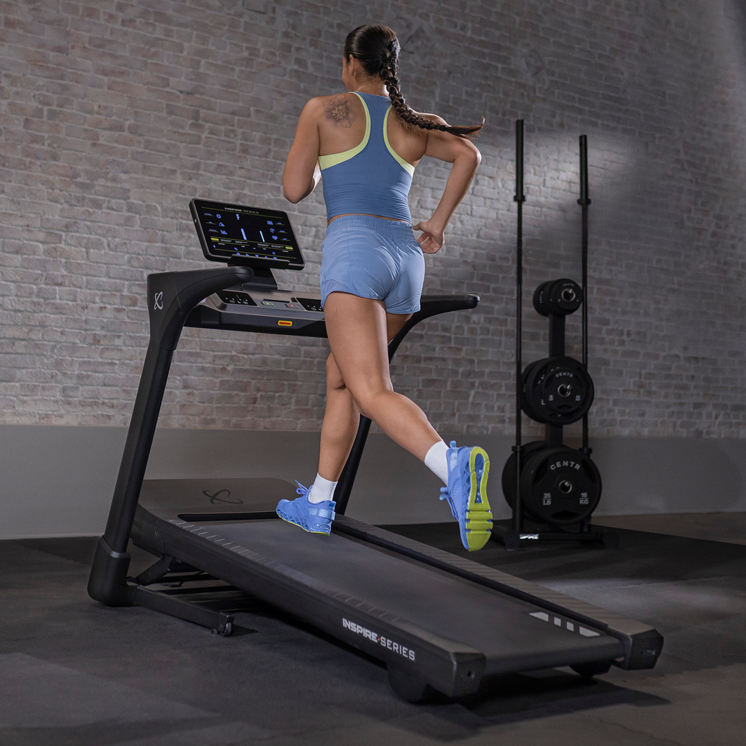 The Inspire Series T5 by Centr features a 4.0 HP brushless motor, Cloud Cushion and Natural Stride Technology, a 15” Touch Key LED display, and quick-adjust controls for a smooth, comfortable run.