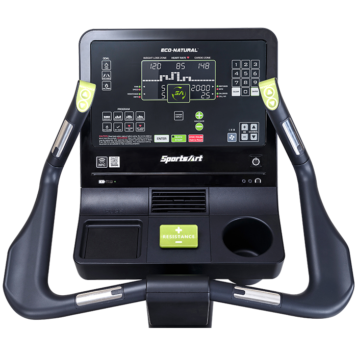The SportsArt C576U Upright Cycle features a low-profile shroud design for ease of-access and integrated with premium technology entertainment options.