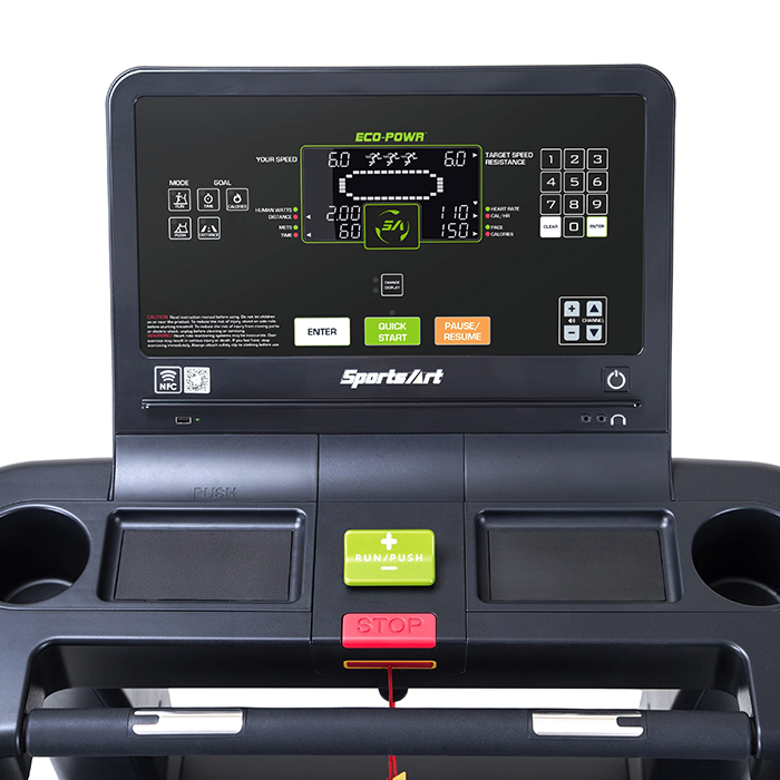 The SportsArt N685 boasts a sleek design that combines supremely low friction and flat-slat belt to create an approachable unit that feels remarkably natural and comfortable. Utilizing both mechanical and electrical braking systems the N685 allows walking, jogging, running, sprinting or sled pushing features that cater to a broad spectrum of users, from deconditioned to elite athletes.